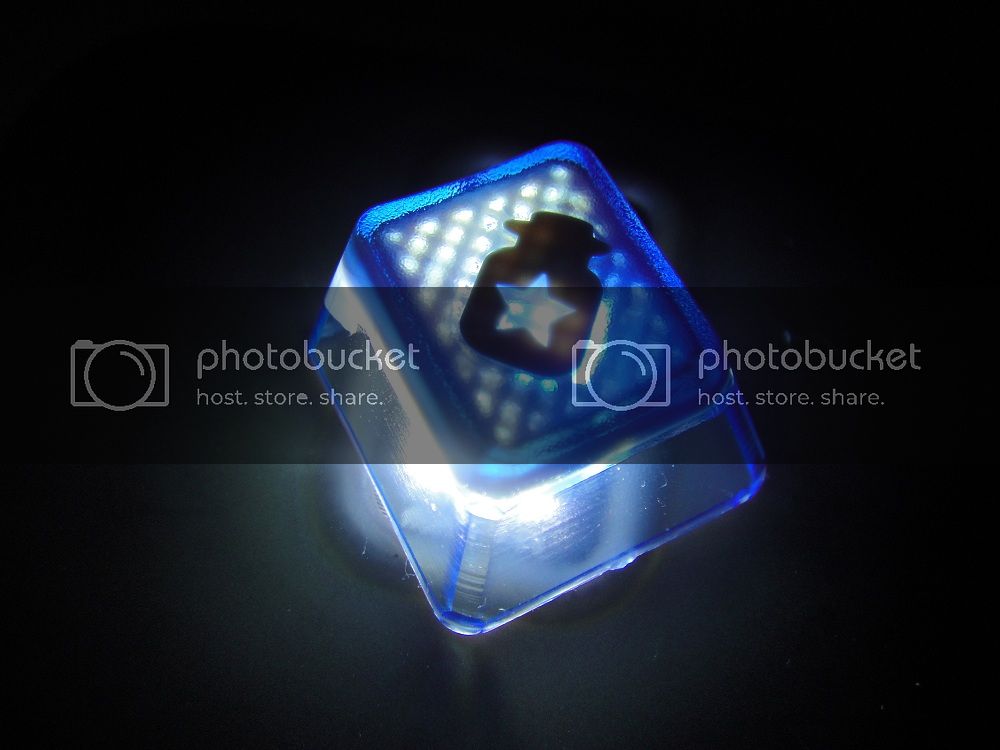 - Laser engraving: keycaps trong suốt sẽ được sơn một lớp sơn UV (tia cực tím) màu đen, sau đó tia laser sẽ làm bay màu trên keycaps làm lộ ra phần trong suốt để tạo thành kí tự. Đây là cách để tạo ra keycaps backlit dùng cho các bàn phím có đèn.