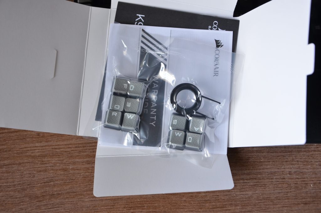 Đóng hộp đơn giản nhưng lại cho cảm giác unboxing rất đã, nhấc từ từ nắp hộp lên là “thận” bắt đầu hé ra từ từ. Dưới bàn phím có 2 phụ kiện đi kèm nữa là kê tay và 2 bộ keycap cho MOBA và FPS.