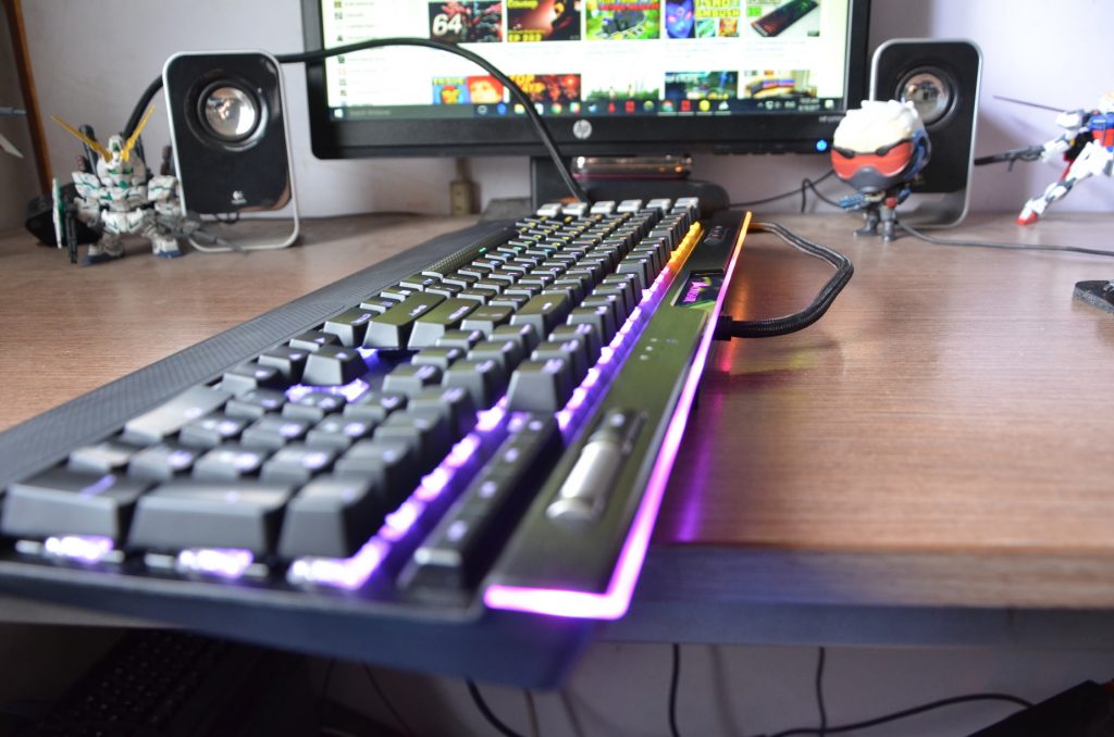 Quay trở lại với vụ đèn đóm. Đây là một trong những điểm mà bạn chi tiền cho chữ “Platinum”. K95 Platinum đúng là một bữa tiệc màu sắc ngay trên bàn máy tính của bạn, Tiềm năng tùy chỉnh LED phải nói là nhiều vô kể, rất nhiều kết hợp để bạn tìm ra phong cách riêng của mình. Phần tùy chỉnh LED không chỉ làm thông thường mà Corsair đẩy nó lên tới nóc với thời gian căn chỉnh và một dạng timeline các kiểu con đà điểu. Và nếu bạn có tai nghe Void thì bạn có thể thể hiện âm thanh bằng LED trên K95 Platinum bằng chức năng Void Playback Visualizer trong phần Lighting, nếu không có tai nghe thì bạn phải sử dụng phần mềm thứ ba để làm việc này.