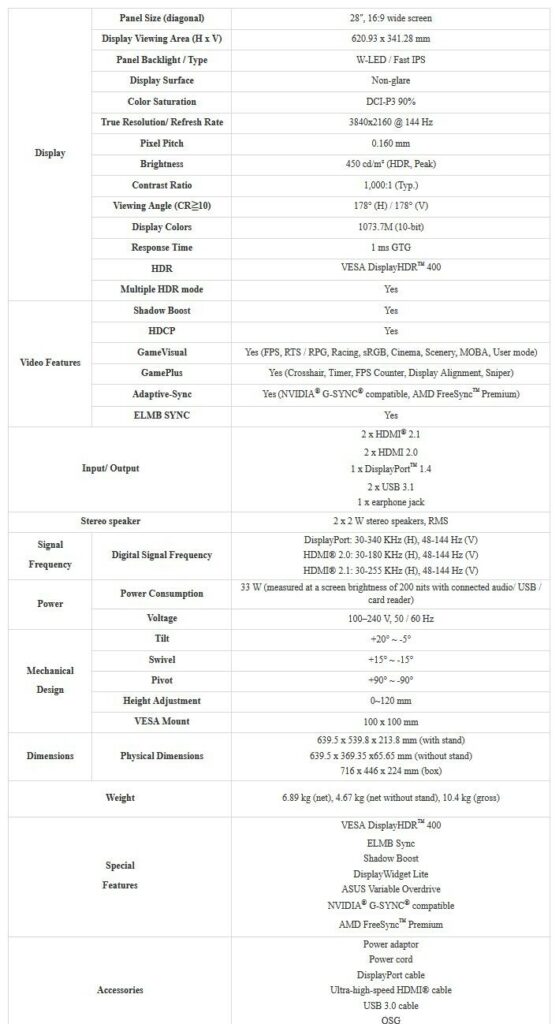 Màn hình ASUS TUF Gaming VG28UQL1A này còn nhận được chứng chỉ VESA DisplayHDR 400 là bảo chứng cho phần màu sắc chất lượng cực tốt với độ phủ màu tới 90% dài màu điện ảnh DCI-P3. Với hàng loạt các con số ấn tượng trên thì anh em có thể tự tin đưa ASUS TUF Gaming VG28UQL1A vào danh sách nâng cấp màn hình của mình trong cuối năm nay và năm tới. Chiến game với một chiếc như vầy thì quá đã rồi.